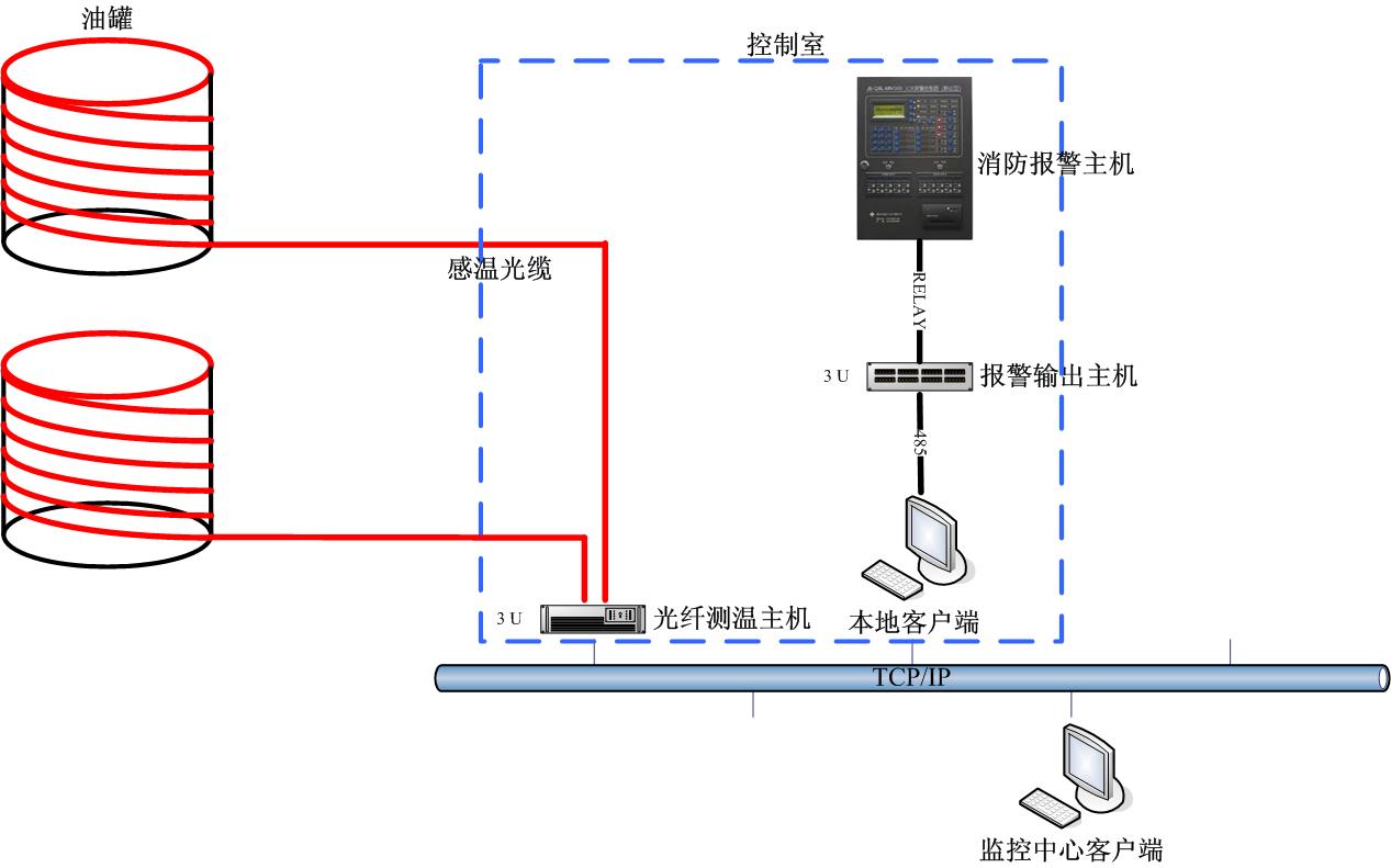 迅捷光通科技有限公司適時(shí)地開發(fā)出線型光纖感溫火災(zāi)探測系統(tǒng),實(shí)時(shí)對油罐進(jìn)行溫度監(jiān)測,并進(jìn)行預(yù)警和報(bào)警,將火災(zāi)消滅在萌芽階段。傳統(tǒng)測溫方式采用的是電信號(hào)測量,容易帶來不安全因素;該系統(tǒng)采用了全光纖傳感無源測溫方式,消除了監(jiān)測系統(tǒng)自身的安全隱患,極大提高了監(jiān)測系統(tǒng)對油罐溫度監(jiān)測的可用性。