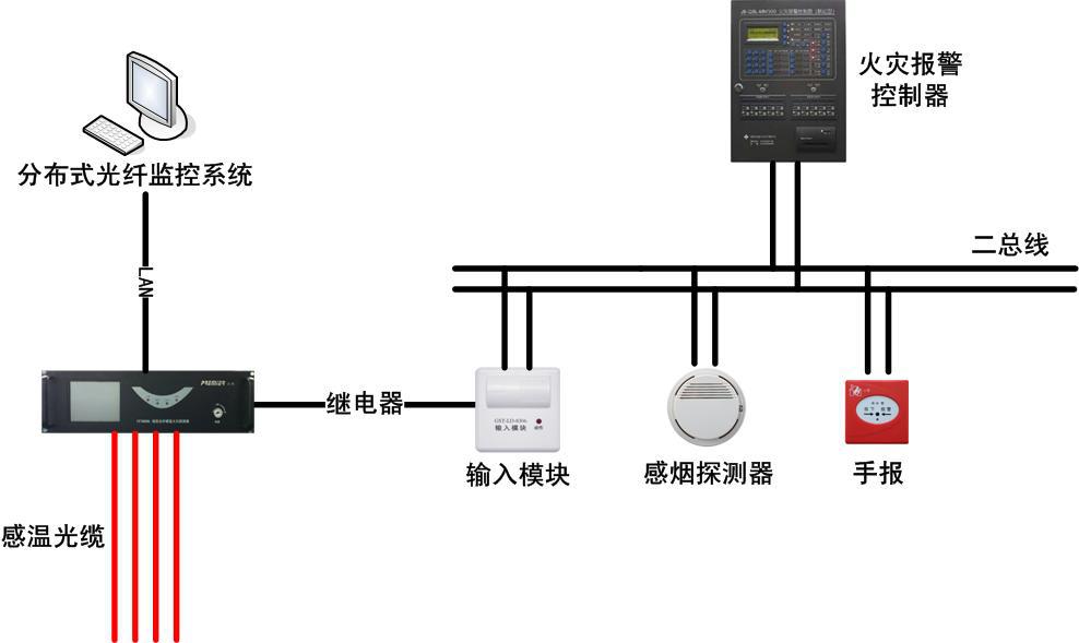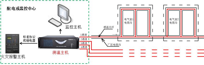 為此,迅捷光通科技有限公司適時(shí)地開(kāi)發(fā)出線型光纖感溫火災(zāi)探測(cè)系統(tǒng),實(shí)時(shí)對(duì)電纜進(jìn)行溫度監(jiān)測(cè),并進(jìn)行預(yù)警和報(bào)警。該系統(tǒng)采用了全光纖傳感無(wú)源測(cè)溫方式,消除了監(jiān)測(cè)系統(tǒng)自身的安全隱患,極大提高了監(jiān)測(cè)系統(tǒng)對(duì)電力溫度監(jiān)測(cè)的可用性。該光纖測(cè)溫系統(tǒng)被很多煤礦、電廠、大型廠礦和供電公司使用,大大降低了火災(zāi)事故的發(fā)生,真正地做到防患于未然,符合電力行業(yè)“安全第一,預(yù)防為主”的安全思想。